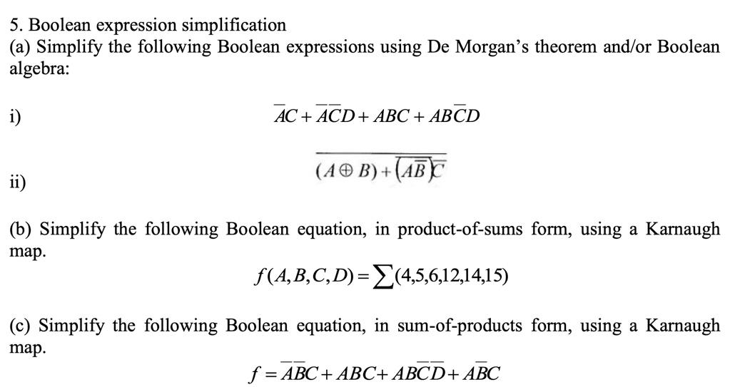 5 Boolean Expression Simplification A Simplify The Chegg Com