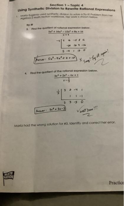 Section 1 Topic 4 Using Synthetic Division To Chegg Com